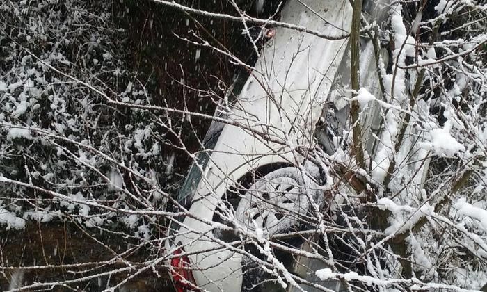 Monta le catene da neve, l'auto finisce nel torrente trascinando la moglie