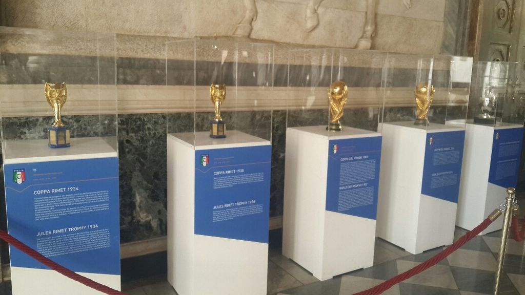 L’esposizione allestita con le coppe vinte dall’Italia è una delle iniziative organizzate nell’ambito delle eventi legati all’incontro tra Italia e Spagna, gara valida per la qualificazione ai Mondiali del 2018, in programma giovedì 6 ottobre allo Juventus Stadium.