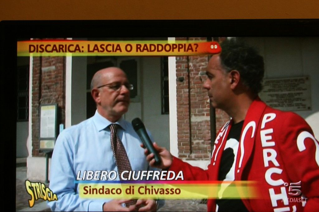 Striscia la Notizia, il popolarissimo programma televisivo di Antonio Ricci condotto da Ezio Greggio e Michelle Hunziker, nella puntata di sabato 16 ottobre ha trasmesso un servizio sulla megadiscarica di Chivasso. L'inviato di Striscia, Luca Galtieri (nome d'arte “Ma perché?”), ha risposto all'appello di alcuni cittadini, preoccupati per l'inquinamento e per il forte incremento di casi di tumori tra la popolazione del territorio circostante: “Abbiamo subito di tutto – scrivono nella lettera inviata a Striscia -. Drammi ambientali, incendi, inquinamento delle acque, svalutazioni immobiliari, ma soprattutto un forte incremento dell'insorgere di patologie tumorali. Una discarica che, come ha detto lo stesso inviato in apertura: “Negli ultimi 30 anni ha messo la città in ginocchio”. Galtieri ha intervistato i portavoce dei comitati di protesta,Paolo Zandarin (Terrasana) e Michele Racco (Restiamo Sani Montanaro). “Ci troviamo di fronte a una situazione particolarmente degradata a livello territoriale – ha detto Zandarin – e questa è una discarica che ha più di 35 anni. L'amministrazione comunale sta appoggiando un progetto di ampliamento importante passandolo come rifiuti zero”.