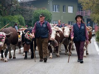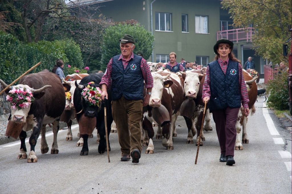 Alle ore 14 finalmente il momento magico che ogni anno regala forti emozioni alle migliaia di persone che giungono in paese per rivivere le tradizioni secolari degli allevatori. Le mandrie, riunite al castello, scenderanno e sfileranno con ghirlande e il suono dei loro campanacci ci trasporterà come in un sogno in tutti quei luoghi dove la natura scandisce i ritmi della vita. Le mandrie scenderanno lungo le antiche vie del paese accompagnate dagli allevatori e dalla Filarmonica Vittoria di Settimo Vittone oltre che dal gruppo folcloristico “LOU TINTAMARO DE COGNE”. Alle 20.30 la manifestazione si chiuderà con la cena di allevatori e simpatizzanti presso il salone “Piantagrant”, allietati dalla musica live di MARCO PICCHIOTTINO.
