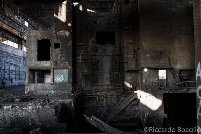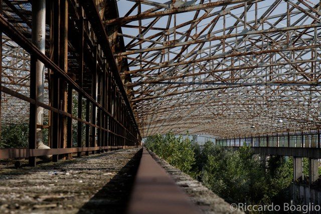 Le acciaierie Lucchini a Settimo Torinese, anche queste rapite dall’obiettivo degli Urban Storytellers, sono l’ultimo stabilimento siderurgico apparso sul territorio comunale di Settimo Torinese e simbolo di un glorioso passato industriale, oggi pressoché sepolto. Le acciaierie sorgono su un preesistente impianto, realizzato dai coniugi Maggio e Baldi, commercianti in materiali ferrosi, sin dal 1955. Nel 1966 la società bresciana Lucchini acquisì la piccola fonderia – fallita e messa in liquidazione già nell’anno precedente – avviando, al tempo stesso, i primi lavori di ampliamento del complesso. L’attività dell’acciaieria Lucchini verrà definitivamente chiusa nel 2000, mettendo la parola fine alla breve parabola dell’industria siderurgica di Settimo. Dagli scatti di Riccardo si evince la nudità di questa fabbrica, fatta di ambienti deserti, macchine in solitudine e ciminiere prive di fumo.