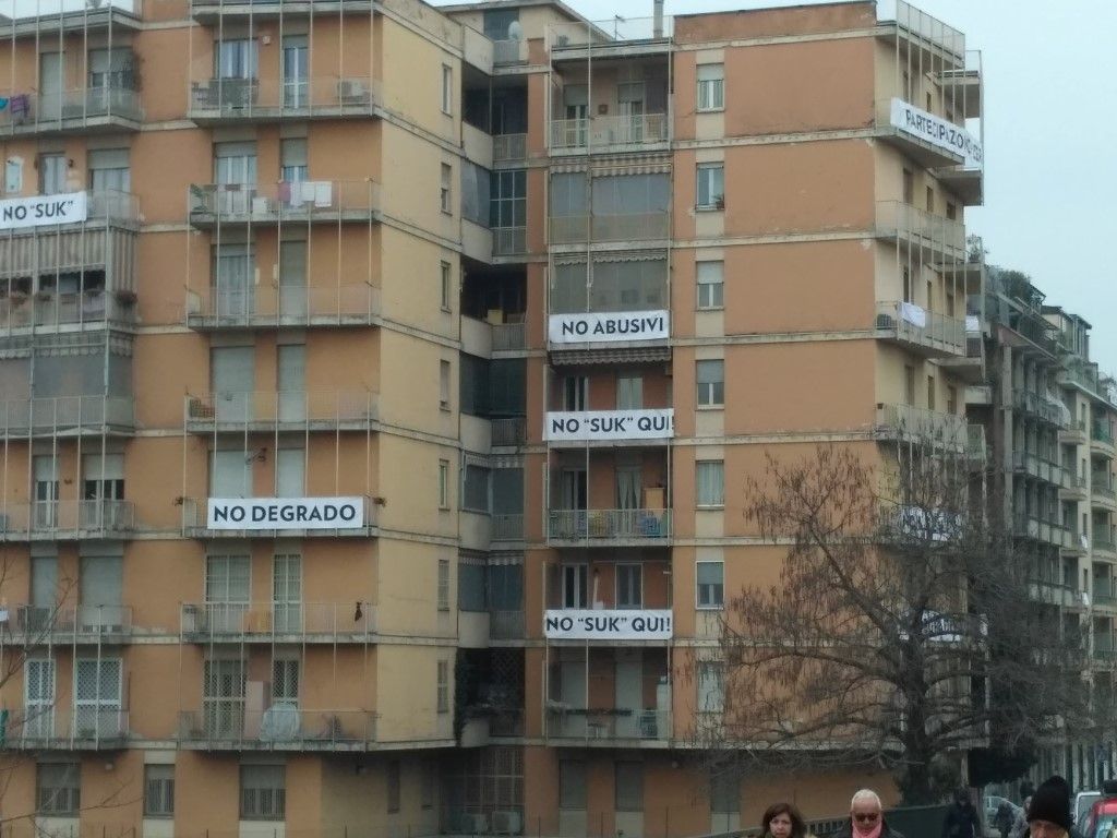 Lenzuola bianche contro il “suk” al Ponte Mosca di Torino