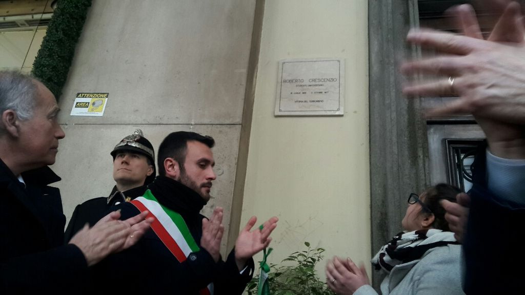 Oggi Torino lo ha voluto ricordare con lo scoprimento di una targa alla sua memoria in via Po, proprio dove spirò tragicamente. Una celebrazione molto intensa, alla quale ha preso parte anche l'ex consigliere Silvio Viale, l'unico imputato del processo dell'epoca ad aver chiesto scusa alla mamma di Crescenzio, la signora Elvira Bacchetto, in una lettera aperta: ".. È giusto chiedere pubblicamente perdono alla madre di Roberto Crescenzio. Lo faccio..... per chi non può farlo".