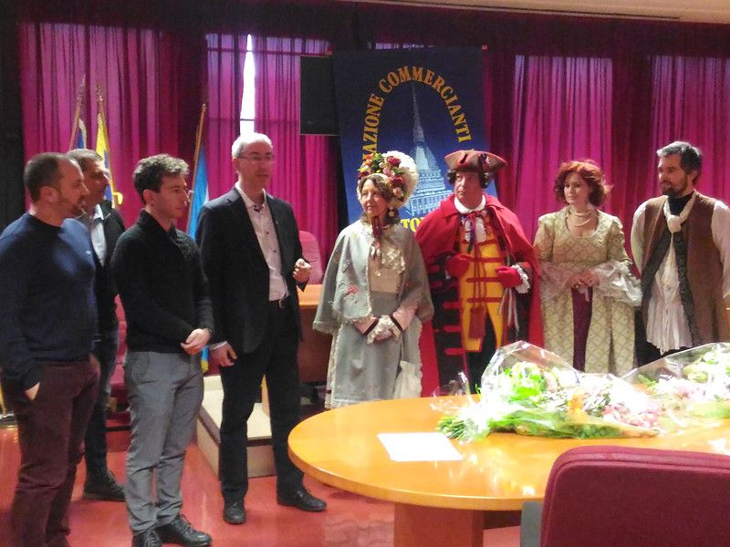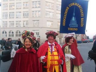 Le maschere sono state impersonate dal gruppo storico della Famija Turineisa, ma ha partecipato anche Simone Gelato, presidente dell’Associazione Commercianti del Balon, che ha fortemente voluto questa iniziativa.