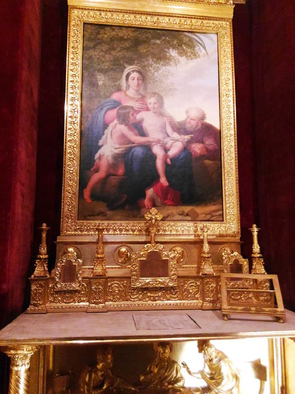 “Si tratta di una tela che raffigura la Sacra Famiglia con San Giovannino – ha spiegato Enrica Pagella, direttrice dei Musei Reali di Torino – che fu dipinta a Parigi. La cappella si completa poi con la doratura sfolgorante delle porte, dell’altare e delle cornici. Lo sfondo vermiglio è dato dal velluto di seta che ricopre le pareti”.