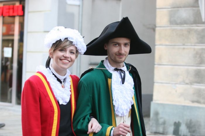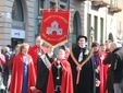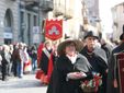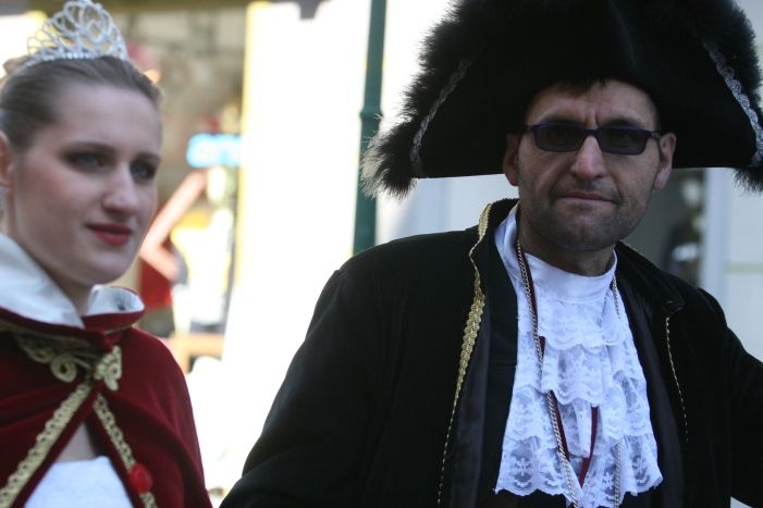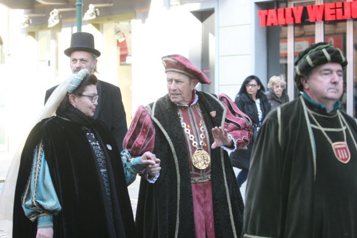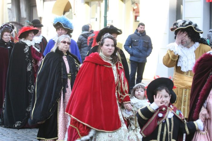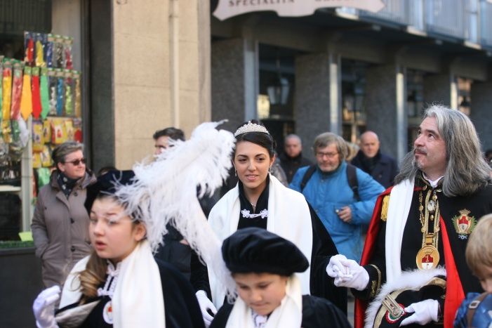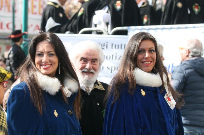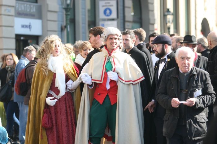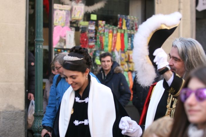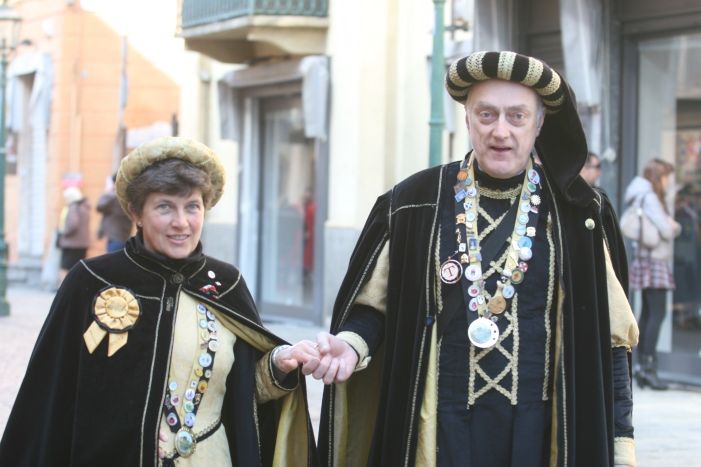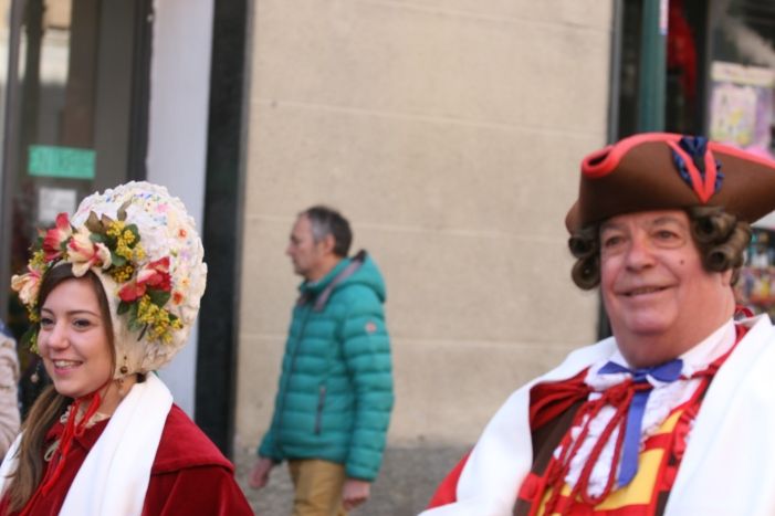 Le maschere, una a una, hanno reso omaggio A Bela Tolera Lucilla Gultieri e all'Abbà Claudio Viano insieme a tutta la loro Corte e alle maschere di Torino Gianduja e Giacometta.
