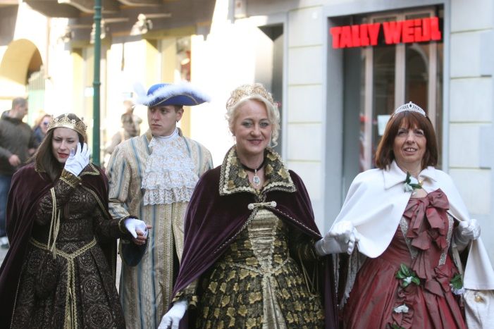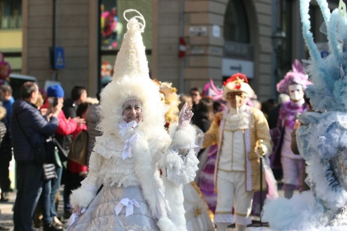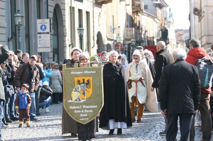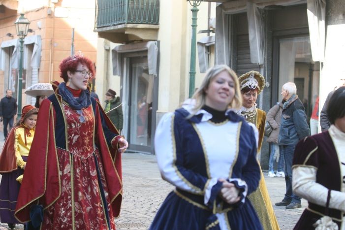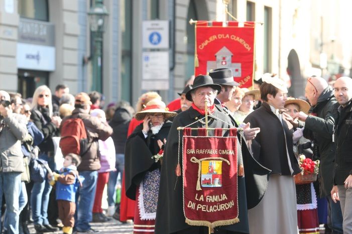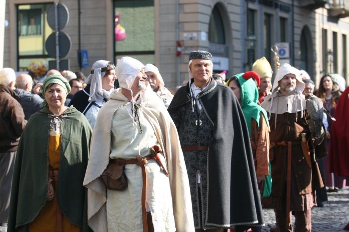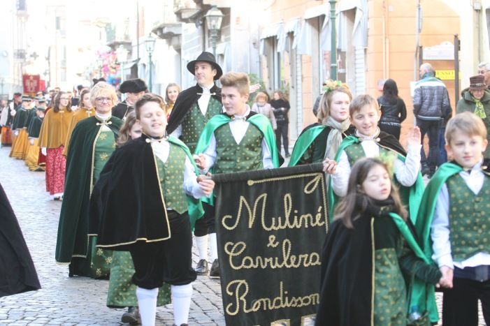 Con loro, sul palco, anche il Coro degli Abbà e l'Ordine delle Bele Tolere. Poi sfilata in via Torino per recarsi al Borgo Vercelli, dove le maschere vengono nuovamente presentate. Centinaia le persone impegnate, tra gruppi e bande musicali.