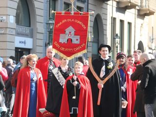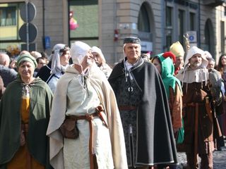 Con loro, sul palco, anche il Coro degli Abbà e l'Ordine delle Bele Tolere. Poi sfilata in via Torino per recarsi al Borgo Vercelli, dove le maschere vengono nuovamente presentate. Centinaia le persone impegnate, tra gruppi e bande musicali.