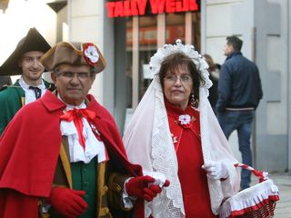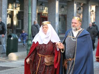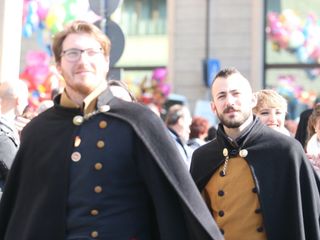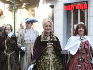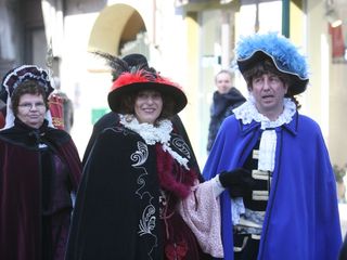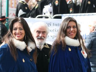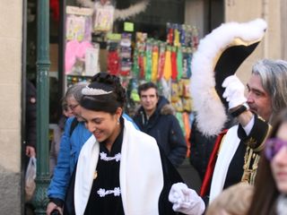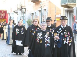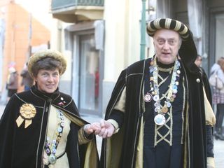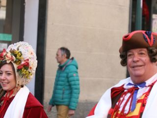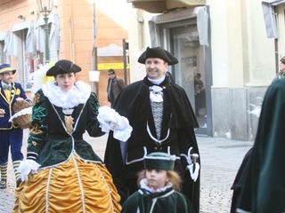 Le maschere, una a una, hanno reso omaggio A Bela Tolera Lucilla Gultieri e all'Abbà Claudio Viano insieme a tutta la loro Corte e alle maschere di Torino Gianduja e Giacometta.