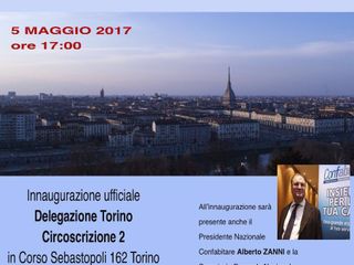 Oltre alla sede provinciale e regionale sita in Torino Corso Cairoli 12 sono previste per venerdì 5 maggio 2017 le aperture di due nuove delegazioni.