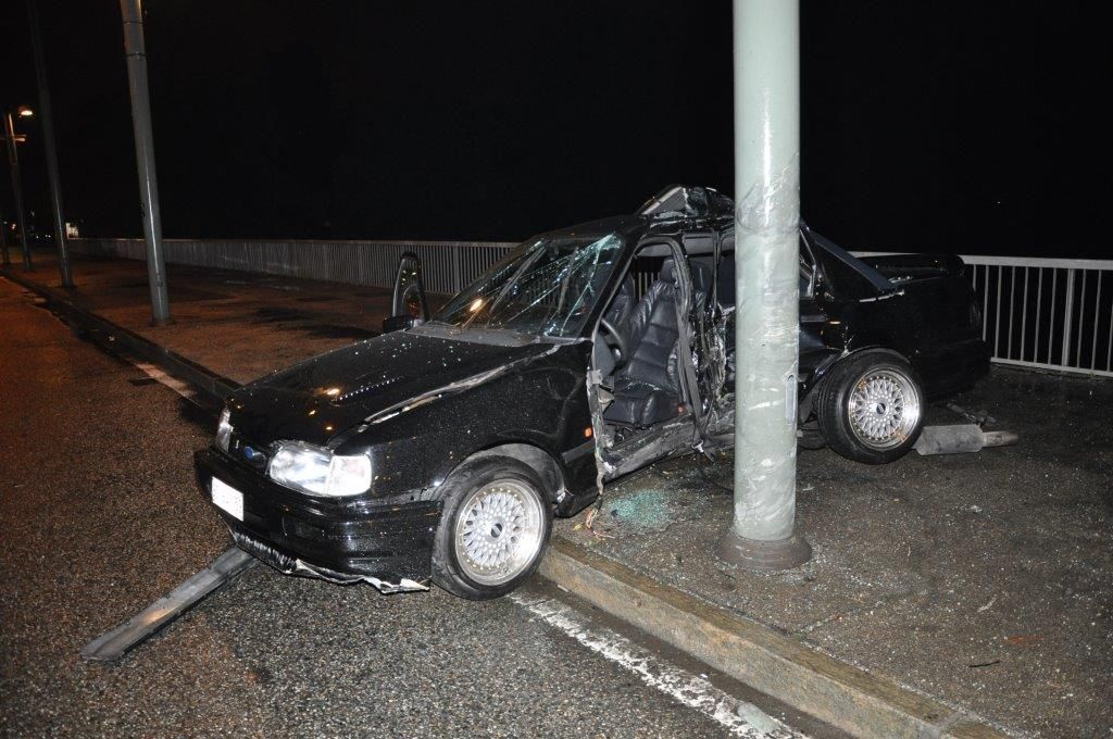 L'incidente si è verificato alle 22: il giovane, forse tradito dalla velocità e dall'asfalto bagnato, ha sbandato alla guida della sua vettura terminando la corsa contro un palo