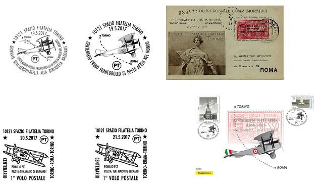 La mostra vuole celebrare l’emissione del Primo Francobollo di Posta Aerea al Mondo, trascorsi i 100 anni dall’effettuazione del volo sperimentale postale Torino/Roma/Torino.