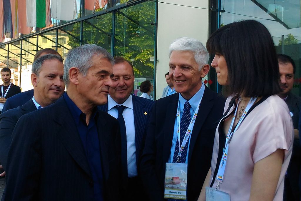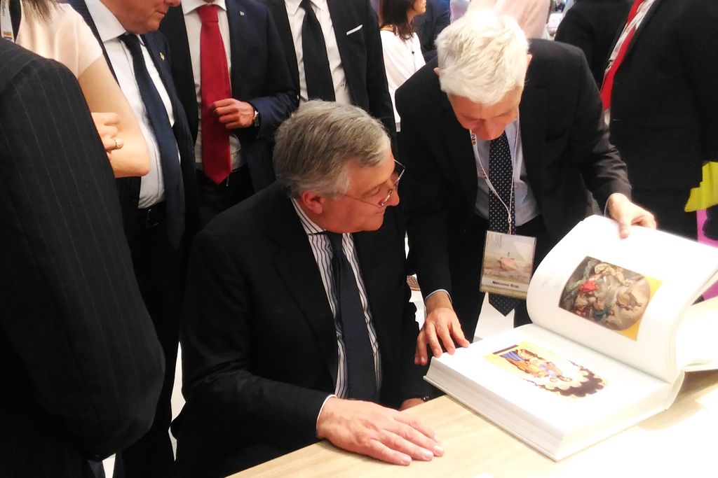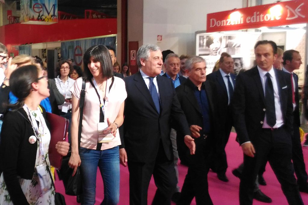 Dopo una visita ad Alba e a Grana, in provincia di Asti, paese di origine della sua famiglia, Antonio Tajani, presidente del Parlamento europeo, è arrivato al Salone Internazionale del Libro di Torino, per una visita organizzata dall'europarlamentare Alberto Cirio. All’ingresso è stato accolto da Massimo Bray, presidente del Salone, Sergio Chiamparino, presidente della Regione Piemonte, e Chiara Appendino, sindaca di Torino.
