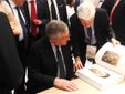 La visita del presidente è proseguita poi allo stand Ferrero, dove ha incontrato Maria Franca Fissolo Ferrero, vedova di Michele e attuale proprietaria dell’azienda di famiglia. Dopo una sosta allo stand Treccani, dove Tajani ha sfogliato una prestigiosa edizione dell’Enciclopedia italiana sotto la guida entustiata di Massimo Bray, il gruppo ha poi portato un saluto allo stand della Croce Rossa Italiana e del Ministero della Difesa.