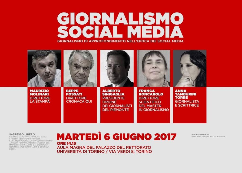 Martedì 6 giugno, alle ore 14.15, in Via Verdi 8, presso l'Aula Magna del Palazzo del Rettorato dell'Università di Torino, si terrà il Memorial Day Michele Torre, una conferenza organizzata per celebrare i 20 anni della morte del Maestro di giornalismo che a Torino ha diretto Gazzetta del Popolo, Stampa Sera e La Stampa del lunedì.