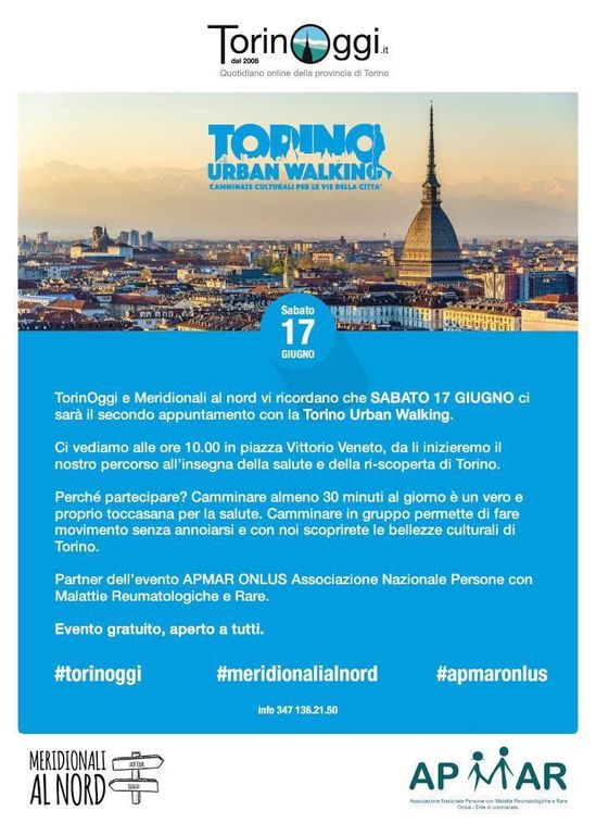Appuntamento sabato 17 giugno ore 10 in piazza Vittorio Veneto a Torino. La passeggiata avrà durata indicativa di 1 ora. Vi sarà una guida turistica di Torino per i momenti culturali ed un esperto di benessere per la parte motoria. Il format vuole mettere tutti nelle condizioni di divertirsi, imparando a conoscere meglio la città. Non mancate!