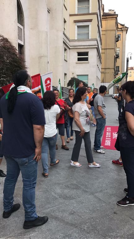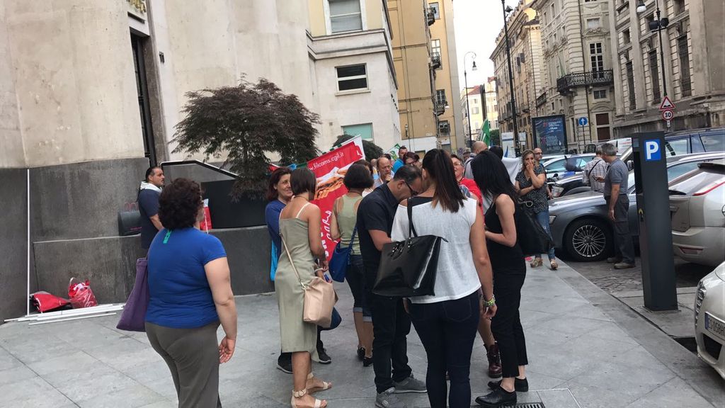 Dalle 7 di stamattina, una cinquantina di persone sono in presidio davanti alla sede di via Corte d'Appello: il timore è di scendere da 87 a 66 lavoratori