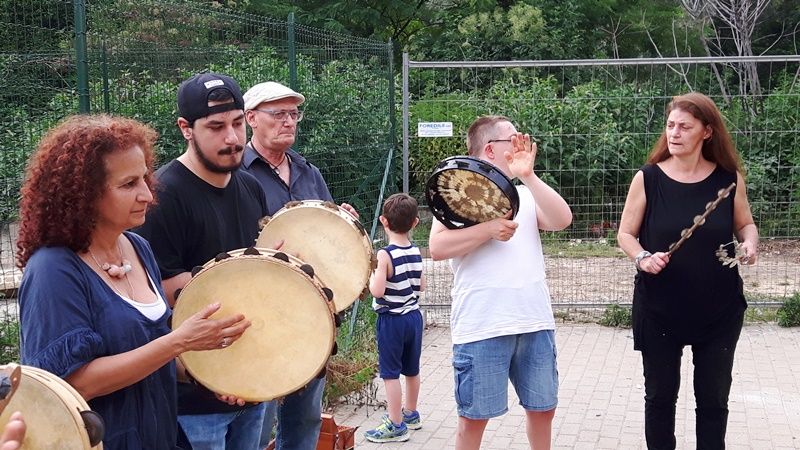 Al pomeriggio l'associazione si ritrova nel cortile della sua sede, uno spazio verde in San Donato, nei pressi della Dora. Alla mano strumenti di ogni genere, dai tamburi fino alle percussioni artigianali, come mestoli e grattugie, per fare le prove generali in vista della partecipazione al Gran Bal Trad, il Festival internazionale di danza e musica che si terrà a Vialfrè il prossimo 30 giugno. Il tutto è parte del “Skathyà”, un piano che mira a fare della musica uno strumento per la collettività, per integrare e creare dialogo tra le persone, proponendosi come un codice di linguaggio per le persone con disabilità e quelle normodotate.