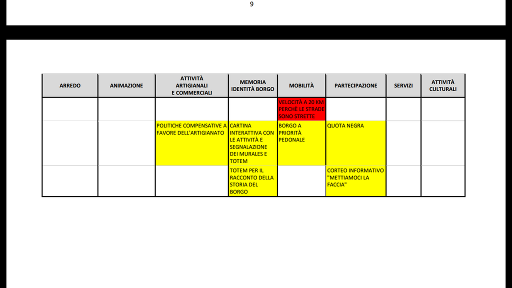 Dopo aver raccontato dei vari dettagli dell’incontro (promozione, modalità di lavoro ecc), si arriva agli esiti, dove vengono raccolte le diverse proposte. E qui il fatto: a pagina dodici, nelle colonna “partecipazione” delle proposte, arrivano “quota negra” e “quota trans”. Letteralmente e senza nessuna spiegazione.
