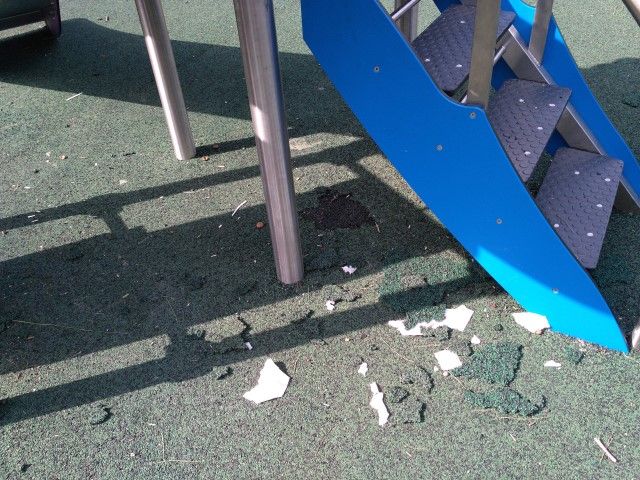 Qualche giorno fa, infatti, la recinzione ha ceduto da un lato, mentre in altri punti risulta traballante. Ma questo si aggiunge ad altri danni. Due panchine sono rotte, mentre la pavimentazione antishock dell’area giochi si sta sbriciolando in alcuni punti ed è presente qualche pezzo di cemento nei pressi di alcune piante, probabilmente staccatosi dalla pavimentazione esterna.