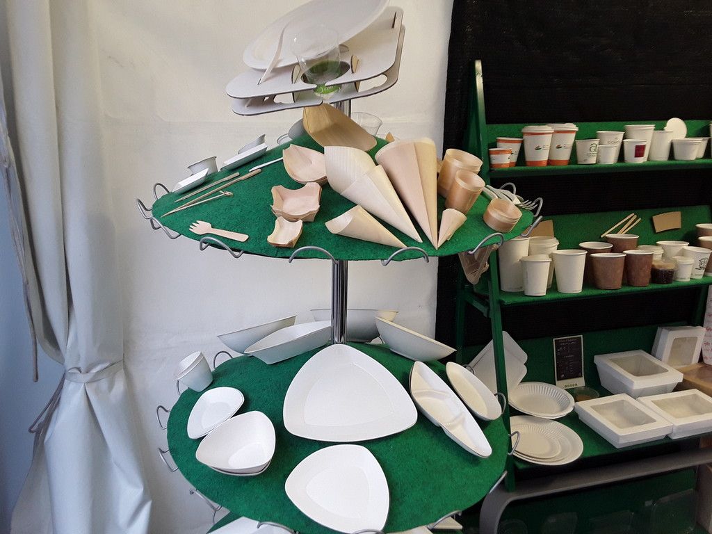 Stoviglie mono uso compostabili: piatti, posate, bicchieri, street food, take away, bio packaging per eventi, catering e locali. Realizzate in mater-bi, polpa di cellulosa e PLA (acido polilattico di mais) dalle caratteristiche simili alla plastica con i vantaggi: provenienza da fonti rinnovabili, possibilità di recupero organico mediante il compostaggio.