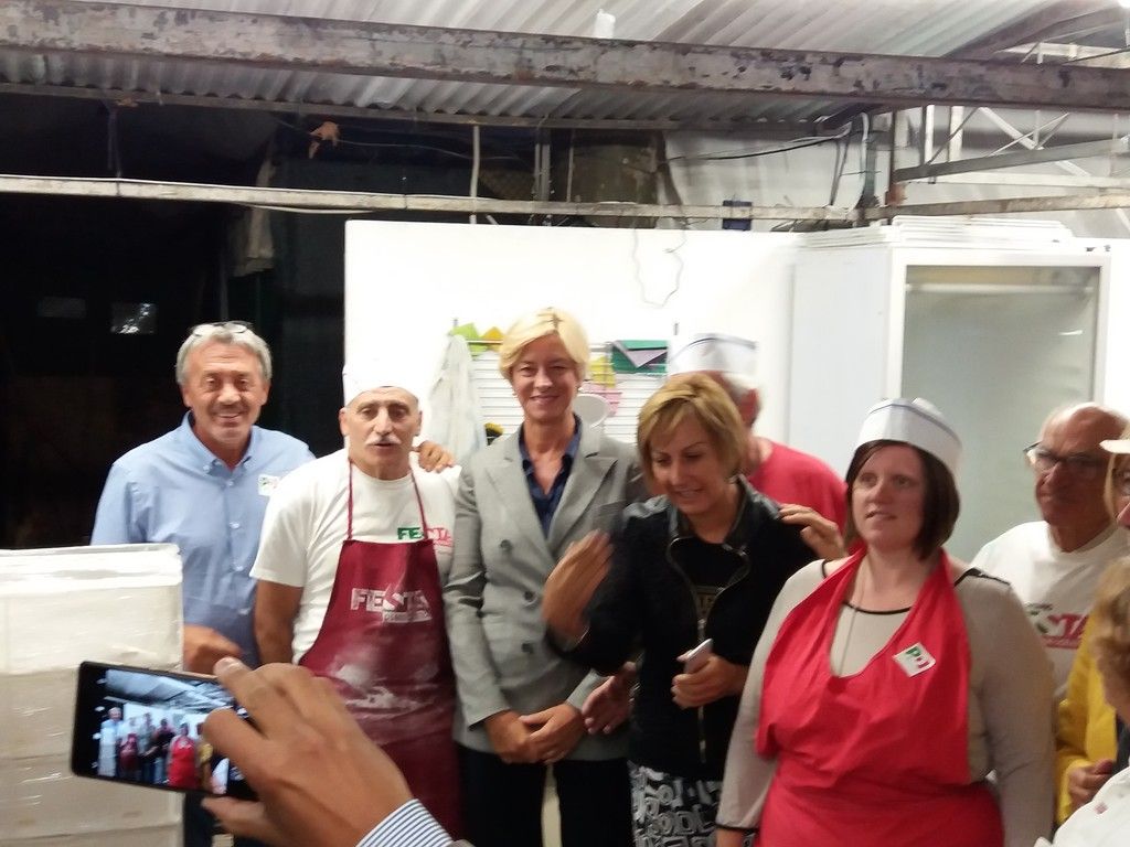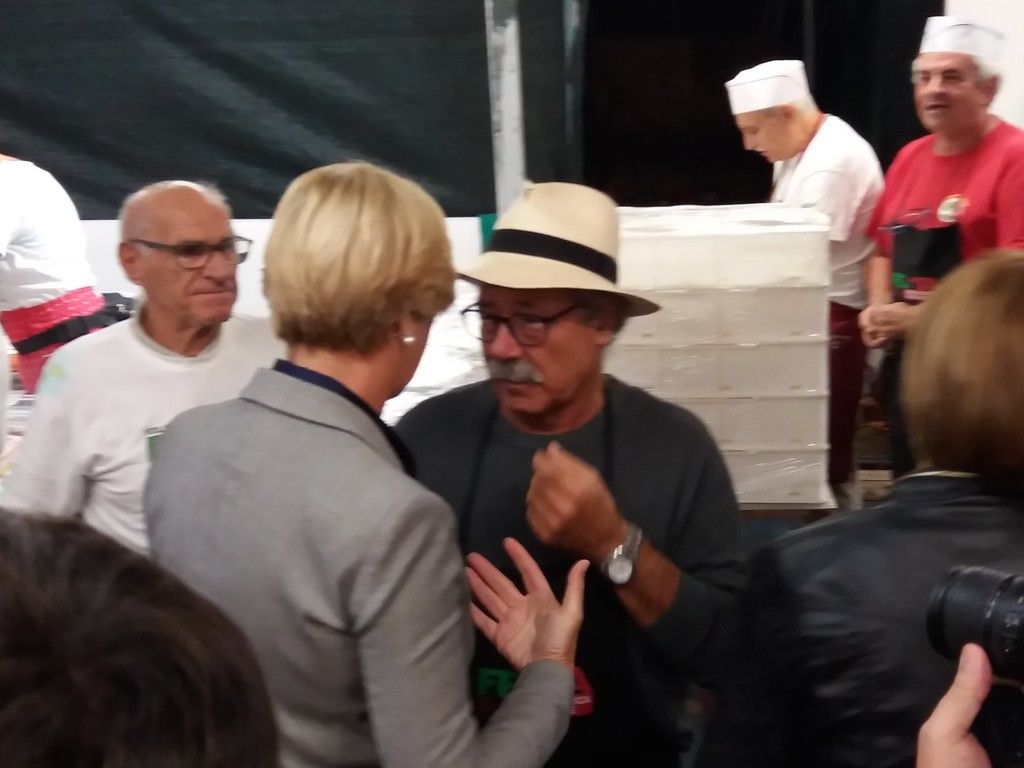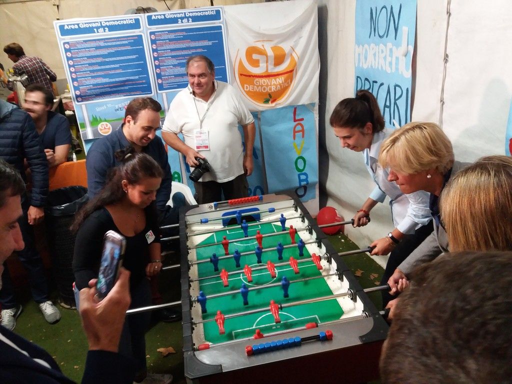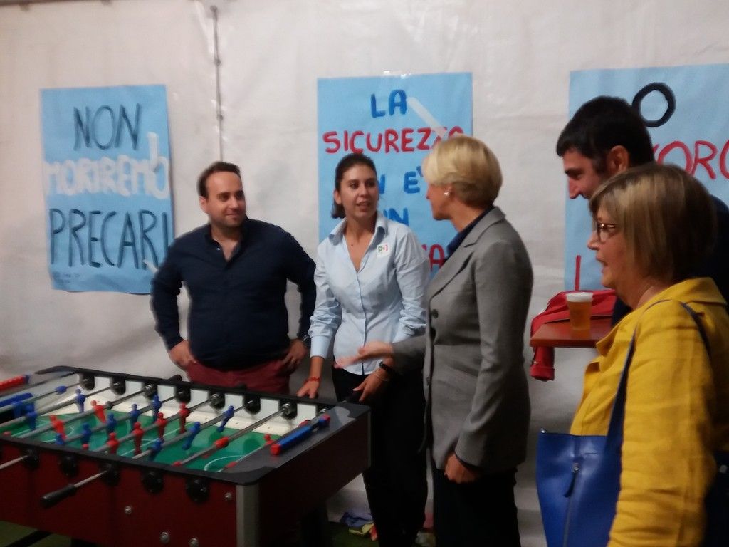 Accompagnata dall'europarlamentare Mercedes Bresso, la ministra è passata dai punti ristoro dello Sporting Dora per il saluto di rito, augurando buon appetito a tutti e scattando foto con i cuochi. Poi, una tappa dai giovani democratici, che le hanno offerto il posto in difesa per due tiri al calcio balilla: una partitella rapida, conclusa subito dopo il primo gol subito.