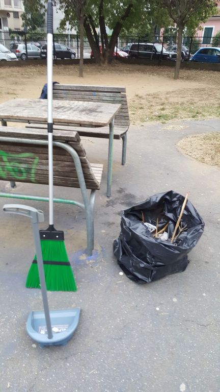 Intanto il parchetto è tornato a respirare, e i sacchi pieni di immondizia sono stati depositati nelle isole ecologiche.