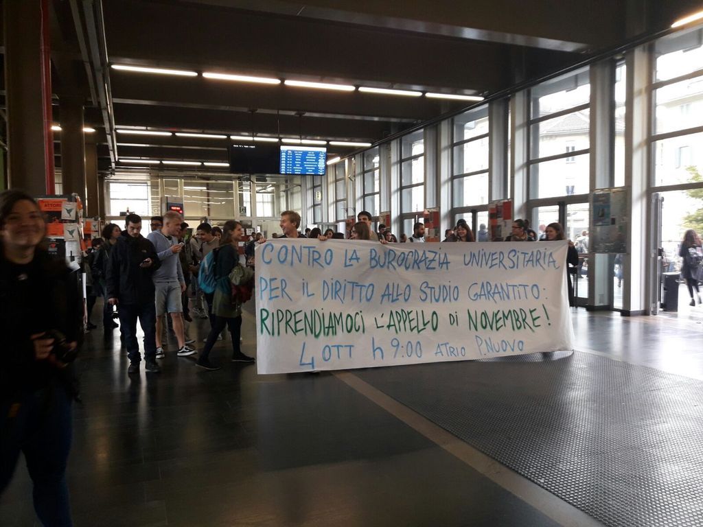 La faccenda in questione, peraltro, non è particolarmente semplice da interpretare. L’appello di novembre, infatti, formalmente è sempre stato un appello straordinario, dedicato quindi a situazioni particolari. Nei fatti, poi, l’appello ha visto frequenze ben più elevate, fino allo scorso settembre, quando la possibilità di prenotazione è sparita senza avvertimenti, lamentano gli studenti. Come alternativa, gli studenti avrebbero potuto registrarsi entro il sei ottobre, stampando un ticket e inviandolo ai docenti. “Ma è una procedura molto farraginosa, i tempi sono stati troppo brevi e non ci hanno dato la possibilità di una proroga amministrativa”, dice chi protesta.