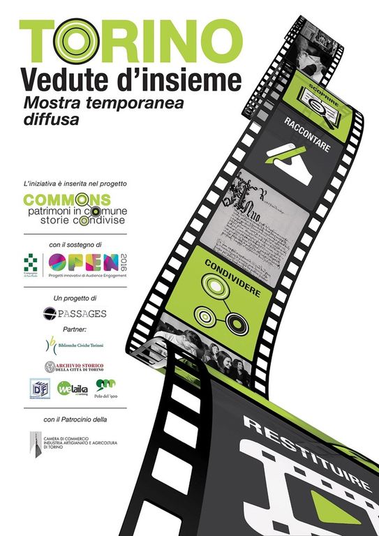 Iniziativa promossa e organizzata dall’Associazione Passages col patrocinio della Camera di commercio di Torino. Il progetto “COMMONS. Patrimoni in comune, storie condivise”realizzato dall’Associazione Passages con il sostegno della Compagnia di San Paolo nell’ambito del bando OPEN 2016-Progetti innovativi di Audience Engagement, è realizzato in partenariato con le Biblioteche Civiche Torinesi, l’Archivio Storico della Città di Torino, il Dipartimento di Filosofia e Scienze dell’Educazione dell’Università di Torino, il Polo del ‘900 e weLaika.