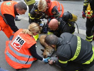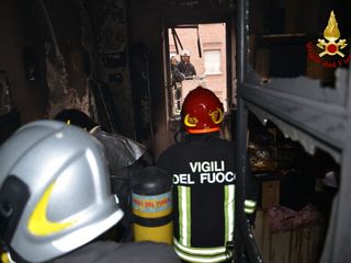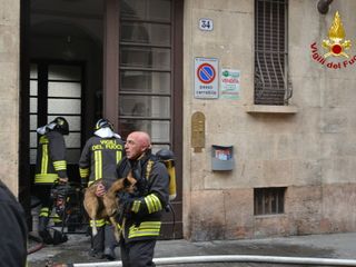 Nessuna persona coinvolta, salvato un cane che si era nascosto sotto il letto, rianimato con una maschera dell'autorespiratore del vigile che l'aveva trovato