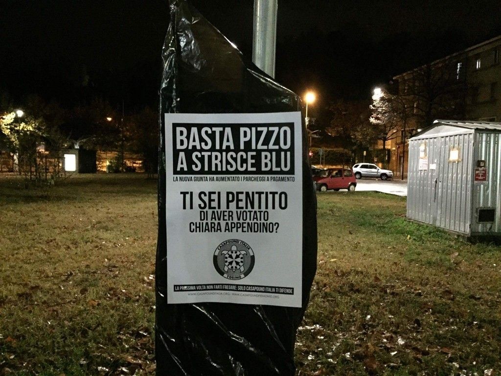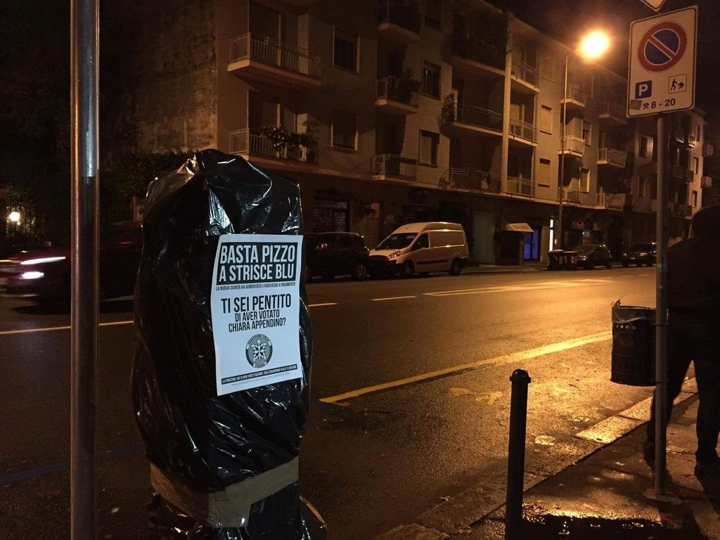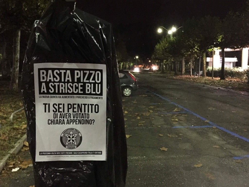Protesta contro le nuove strisce blu: Casa Pound incappuccia i parcometri di piazza Zara