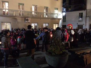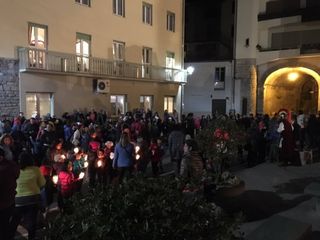 I molti genitori accorsi, attendendo in piazza IV Novembre l' arrivo dei piccoli, hanno potuto ammirare la colonna di fiammelle accese attraversare il ponte per poi discendere la stradina sulle pendici del torrente.