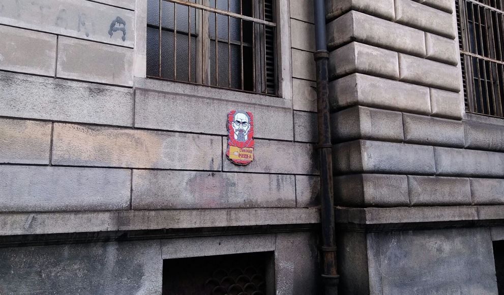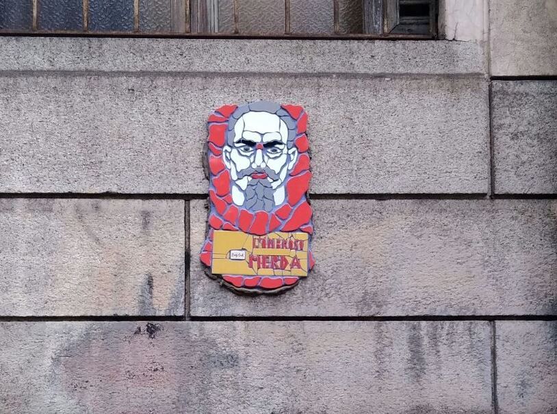 L'opera d'arte, rivendicata sul web dall'autore, attacca lo studioso Ottocentesco, ma crea anche dibattito tra i cittadini