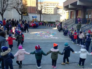 Un flash mob, questa mattina, per protestare contro i tagli che il Comune vuole apportare alle scuole materne paritarie convenzionate