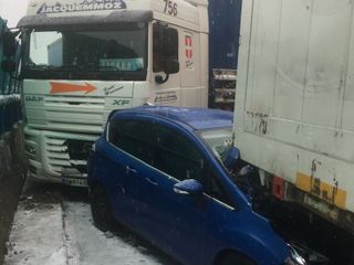 La viabilità è bloccata in ambedue le direzioni a causa di un altro incidente che ha visto un'auto capovolgersi. Comune la causa: basse temperature e prime nevicate