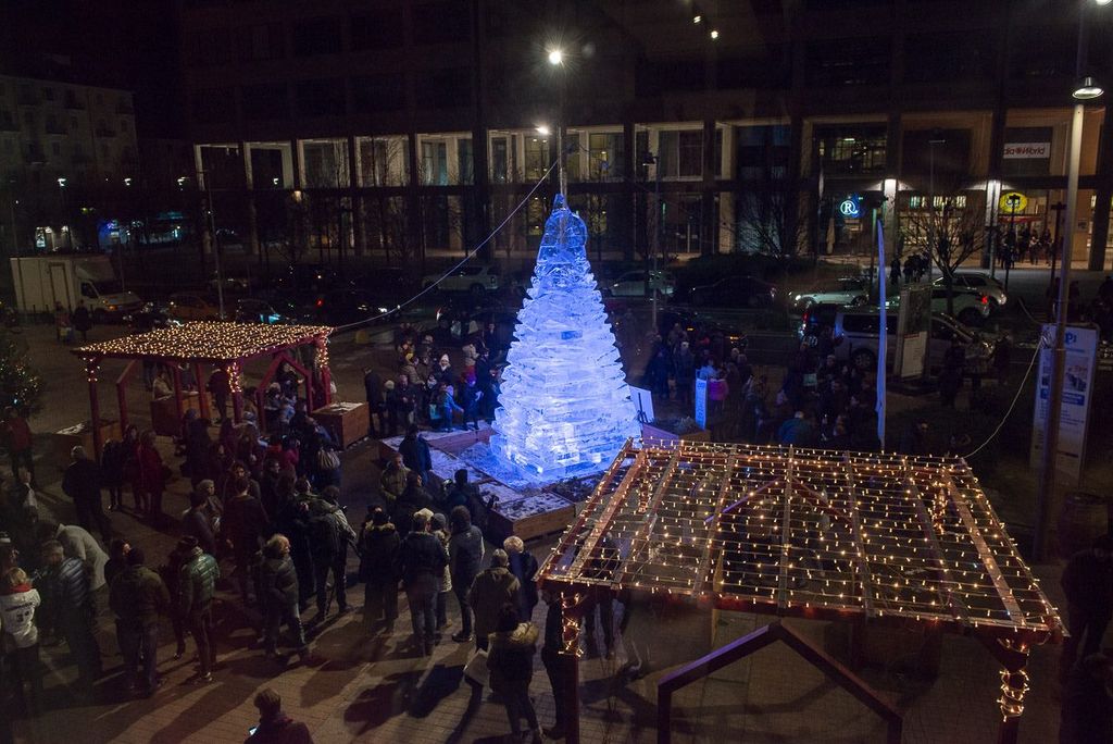 Si è acceso l'albero di ghiaccio nel piazzale di Eataly Torino Lingotto. L'albero di 5 metri per 18 tonnellate di puro ghiaccio si colora di bianco, blu, arancione e rosso in un gioco di luci davvero unico nel suo genere.
