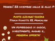 Venerdì 22 dicembre dalle 15 alle 18, al Punto di Svolta, festa con i ragazzi di prima e seconda delle Scuole Medie, del Centro Corallo e di Etor, con musica, Karaoke e giochi, mentre la sera dalle 21 ci sarà l'attesa festa di Natale per le classi terze dalla Scuola Clotilde.