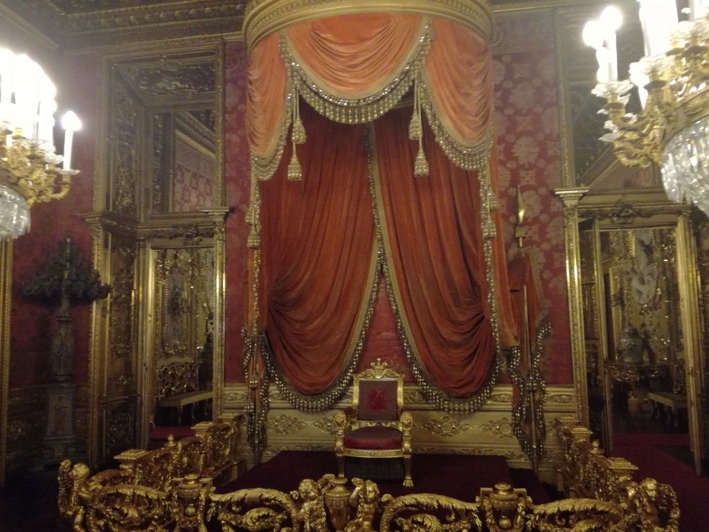 Situata al piano nobile del Palazzo che affaccia su piazza Castello, venne riplasmata dal bolognese Pelagio Palagi su volontà di Carlo Alberto. Era la prima metà dell'ottocento e la sala era stata fin lì una camera da parata. Si collocò un nuovo trono, un imponente baldacchino l'area fu cinta appunto da un arredo che era già presente nelle collezioni reali. La balaustra è in legno intagliato, scolpito e dorato e fu realizzata da Francesco Bolgié. In origine doveva racchiudere il letto di Maria Teresa d'Asburgo Lorena Este, giovane sposa del duca d'Aosta.