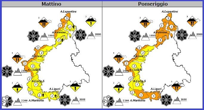 Le nuove nevicate previste oltre i 900-1200 metri, accompagnate da venti moderati di quadranti meridionali, determinano un graduale aumento del grado di pericolo valanghe su Alpi Liguri, Alpi Marittime orientali e zone prealpine settentrionali.