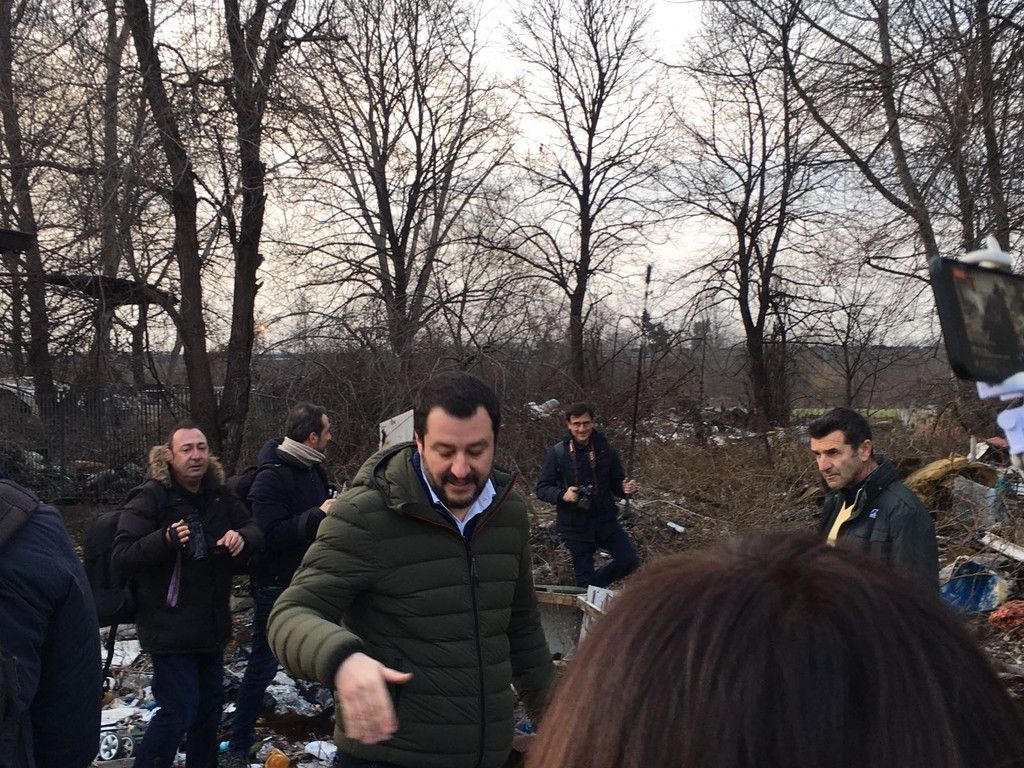 Matteo Salvini è arrivato a Torino per il suo tour elettorale. Alle ore 17 si è presentato al campo rom di via Germagnano e il leader della Lega ne ha subito approfittato per criticare gli avversari politici.