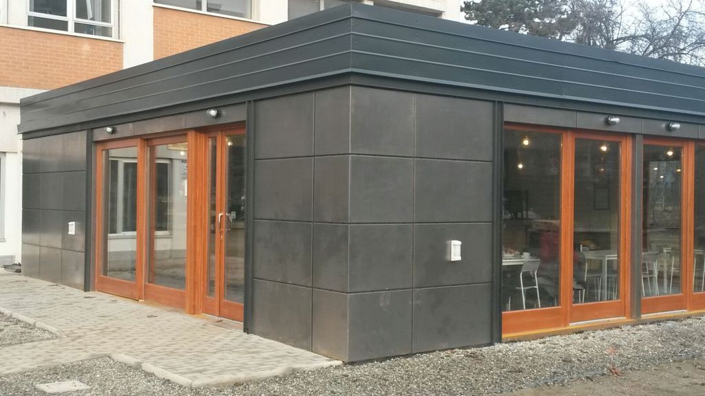 Aperta di recente all'esterno della sede, la struttura interamente in legno sfrutta un sistema di riscaldamento a basso consumo