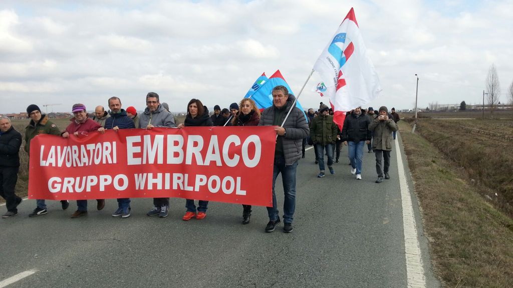 A poche ore dall'inizio (salvo nuovi rinvii) dell'incontro a Roma, presso gli uffici del Mise, tra il ministro Carlo Calenda e i vertici dell'azienda, i dipendenti Embraco stanno sfilando a Riva presso Chieri di fronte allo stabilimento che vede a rischio circa 500 posti di lavoro.