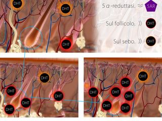 Entrambe sono sostanze naturali molto comuni nel nostro organismo, ma esse hanno azioni negative sul cuoio capelluto e sui capelli: il DHT perturba vari equilibri fisiologici del ciclo del capello, mentre la PGD2 instaura e mantiene una cronica infiammazioni dei tessuti che va a potenziare il lavoro già negativo del DHT.