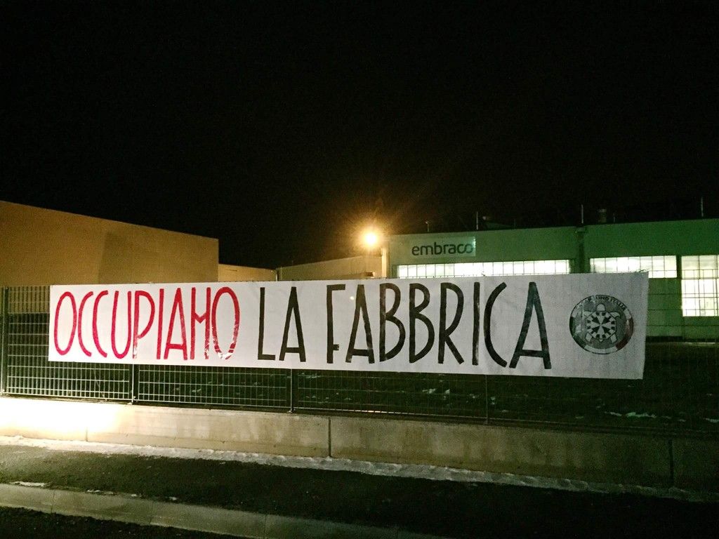 Anche i militanti di Casa Pound dicono la loro sul caso Embraco, lo stabilimento di Riva di Chieri ormai a fortissimo rischio chiusura. Nella notte, è stato appeso al cancello dell'azienda uno striscione con la scritta "Occupiamo la fabbrica". "Questo polo industriale, vanto per tutto il territorio, non può chiudere così. Qui ci sono operai qualificati e volenterosi che possono mandare avanti l'azienda anche senza la Whirlpool e la Embraco", dicono gli esponenti di estrema destra.