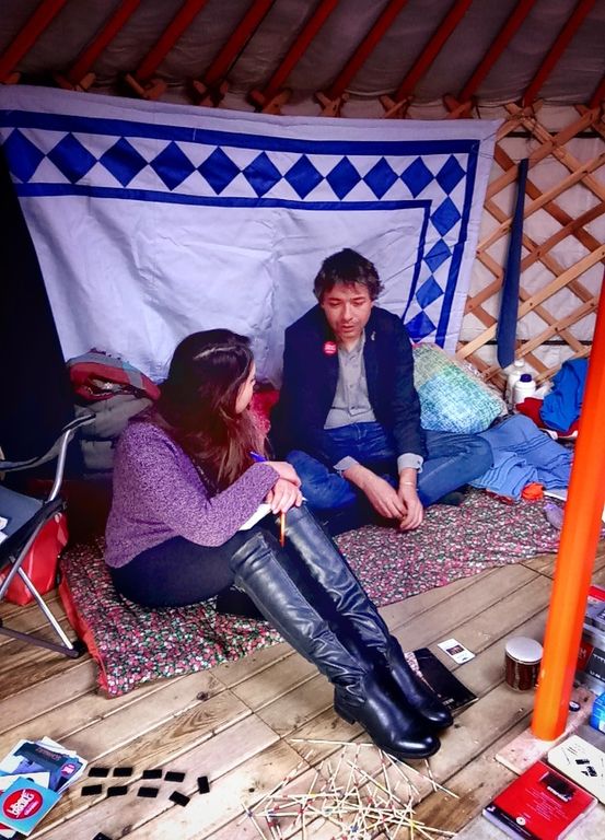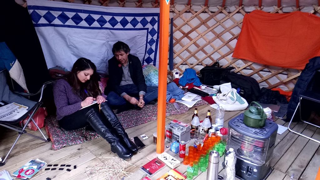 Un luogo dove, come spiega Schwarz stesso, “non succede nulla da anni, e sono i cittadini i primi a essere contenti per questa novità mai vista”. E sicuramente, chiunque passi da lì non può fare a meno di avvicinarsi incuriosito alla tenda: per costruirla, normalmente, ci voglioni cinque ore, ma, a causa del tempo particolarmente infausto del fine settimana, per tirarla su Schwarz e i suoi hanno dovuto cercare rinforzi tra parenti e amici. Il risultato, sudato ma soddisfacente, è una dimora calda e riparata, in cui accogliere chi arriva per un saluto, per conoscere meglio il programma elettorale, o per condividere il libero pensiero e lo scambio di opinioni, tra letture di Zagrebelsky e Saviano, e documentari sul buddismo in Birmania.