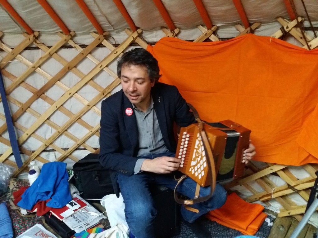 “Mi hanno dato del pazzo, del rimbambito, chiedendomi come mi fosse venuto in mente di dormire qui dentro con questo freddo”, racconta scherzando Stefano Schwarz, candidato alla Camera per Liberi e Uguali nel Collegio 4 Uninominale. Da sabato notte, in occasione del suo trentacinquesimo compleanno, ha trasferito la sua residenza in una yurta, direttamente dalla Mongolia, piazzata in mezzo al grande prato di corso Traiano all'angolo con via Guala. Una “no man's land”, come lui stesso la definisce, appartenente a un privato non ben identificato per cui ha penato fino all'ultimo, tra lungaggini burocratiche e ritardi in itinere. E proprio ieri, nel primo pomeriggio, una visita dei vigili urbani ha voluto accertare la regolarità del suo insediamento: tutto a norma, nulla fuori posto, tra una chiacchiera accanto alla stufa e una tazza di tè speziato.