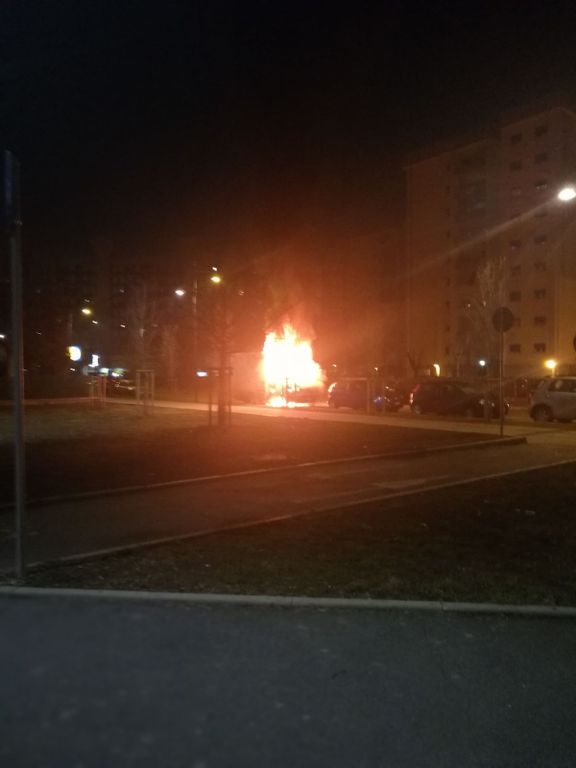 Ore 21: una colonna di fuoco illumina via Ponchielli all’angolo con via Petrella, nei pressi dell’area verde. Si tratta di un furgone, completamente incenerito in seguito all’accaduto.