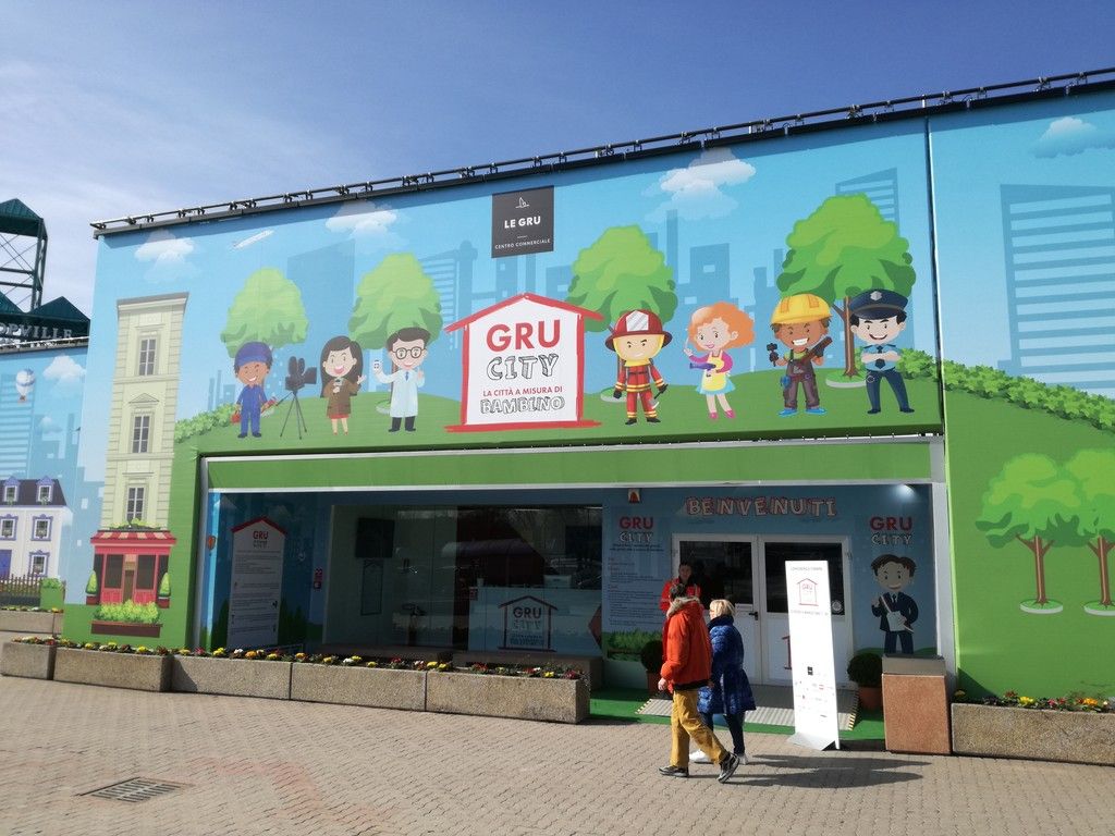 Accanto a Le Gru è sorta una città bonsai. Una piazza con supermercato, parrucchiere, gommista, ma anche ospedale e vigili del fuoco. Ma tutto in scala, su misura di bambino. Si chiama Grucity ed è la nuova struttura che il centro commerciale mette a disposizione per i propri utenti e per il territorio e che va ad aggiungersi alle attrazioni come la pista per il ghiaccio, oppure il Village estivo con le serate e i concerti.