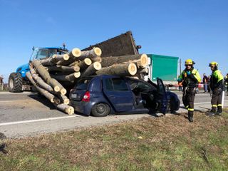La legna trasportata finisce su un'auto dopo un sorpasso azzardato. Incredibilmente salvo il bambino che viaggiava sul sedile posteriore. La nonna morta sul colpo