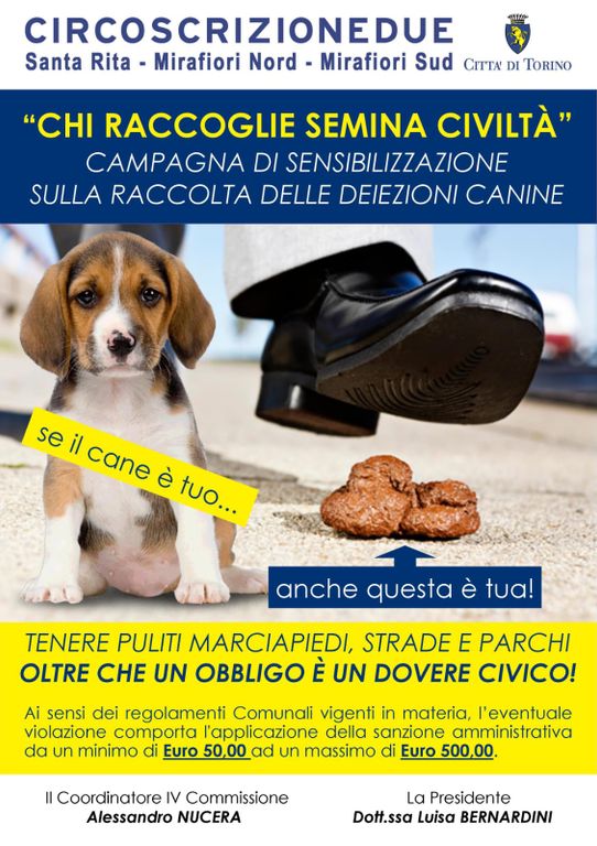 Una lotta all’inciviltà che parta da un sacchetto e un semplice gesto, per lasciare puliti i giardinetti di Mirafiori e Santa Rita. È stata lanciata la campagna “Chi raccoglie semina civiltà” della Circoscrizione 2, per sensibilizzare i padroni di cani sul problema delle deiezioni canine non raccolte: una mancanza di cui si macchia l’intera città, ma che in questi territori è particolarmente sentita, soprattutto in alcune zone più periferiche.
